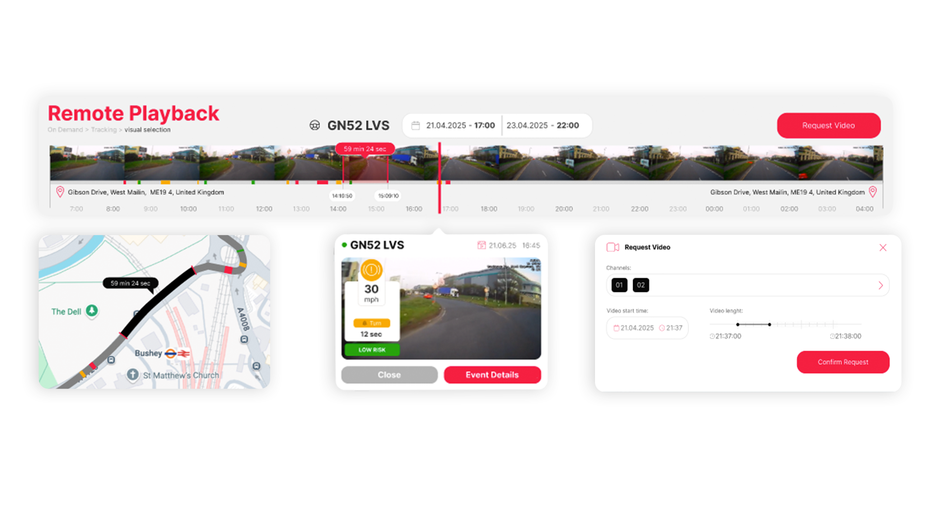 Easily scan through a timeline with remote playback to visually explore a recent journey, with events pre identified and loaded for concise and efficient review.
